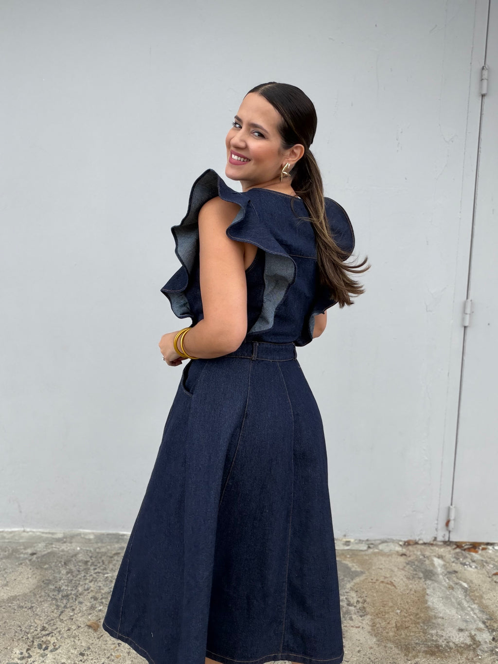 Denim Ruffle Midi Dress