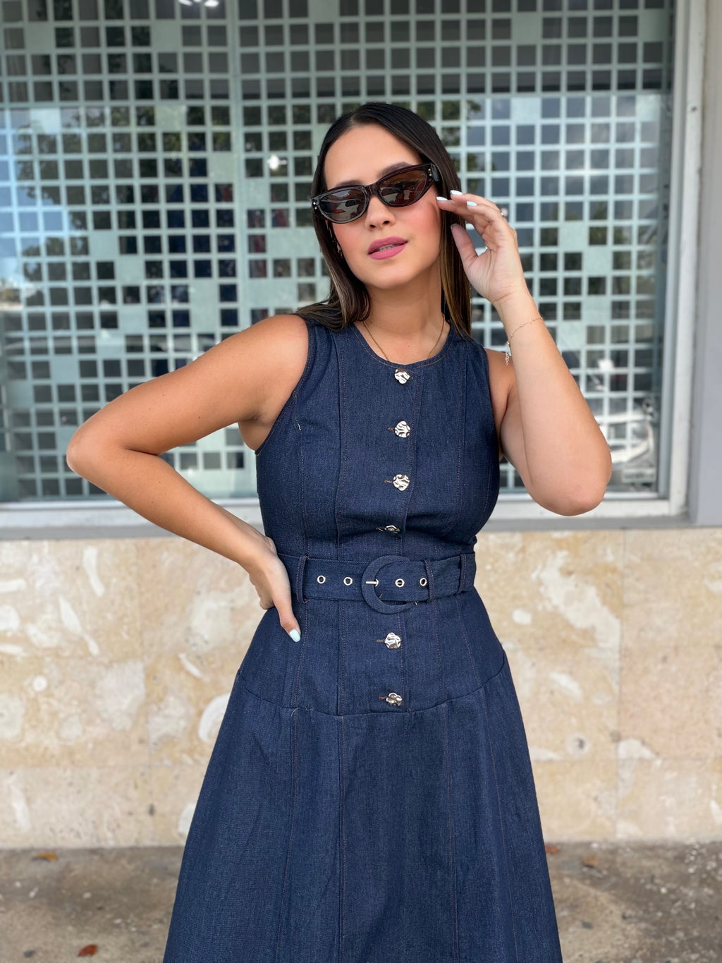 Midi Denim Belted Dress