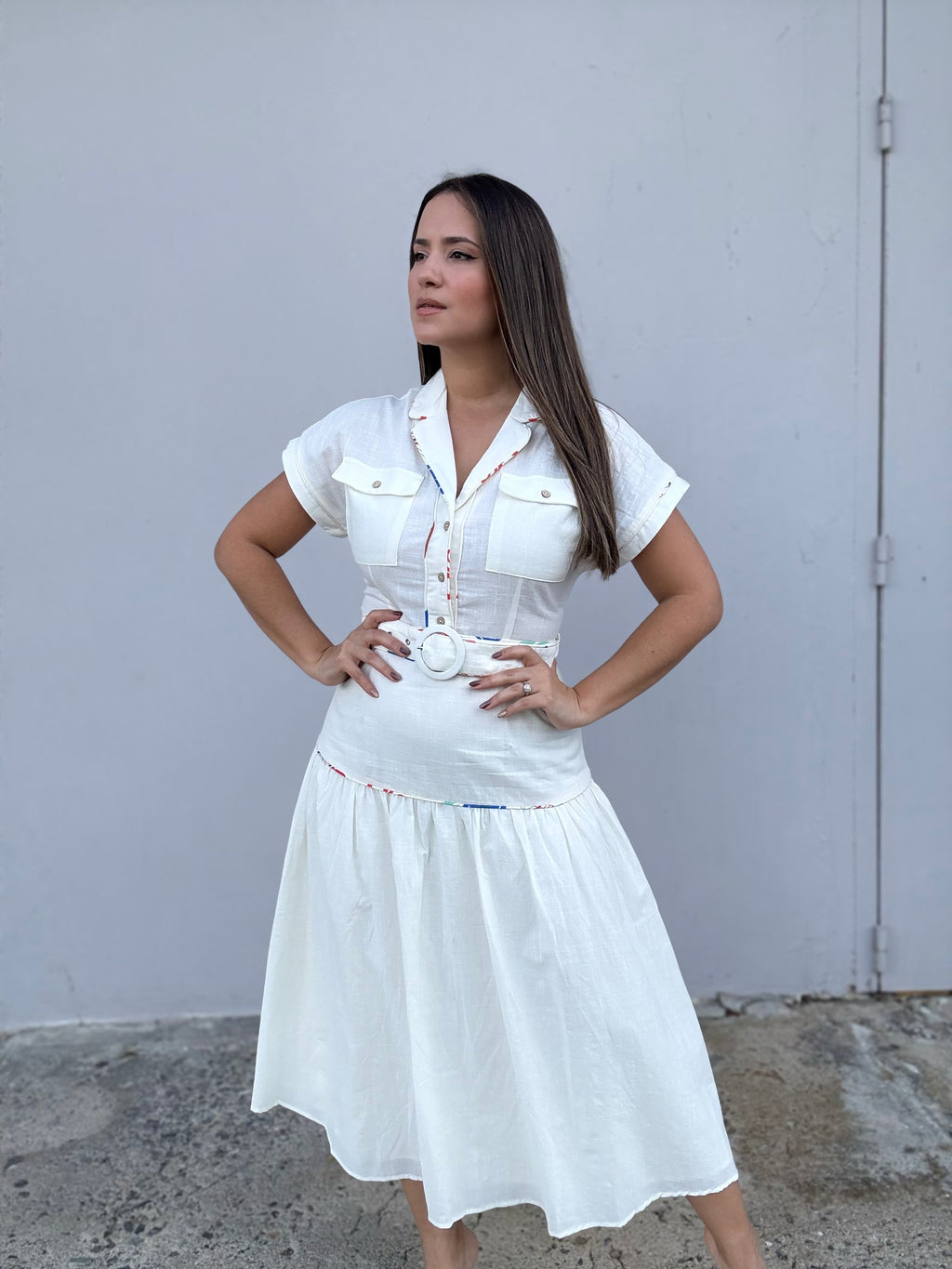 Midi Ivory Belt Dress