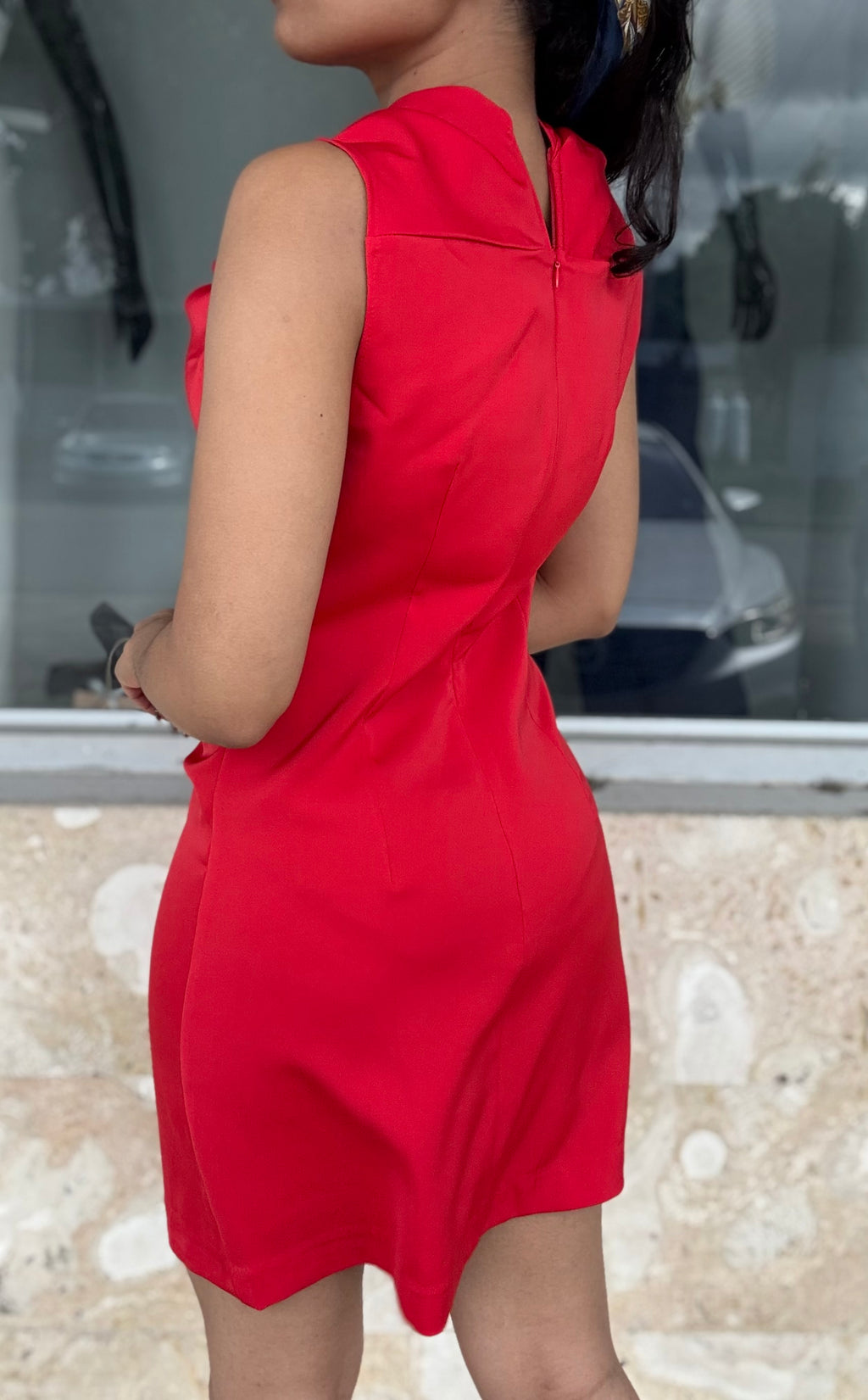 Red Pleated Waist Dress