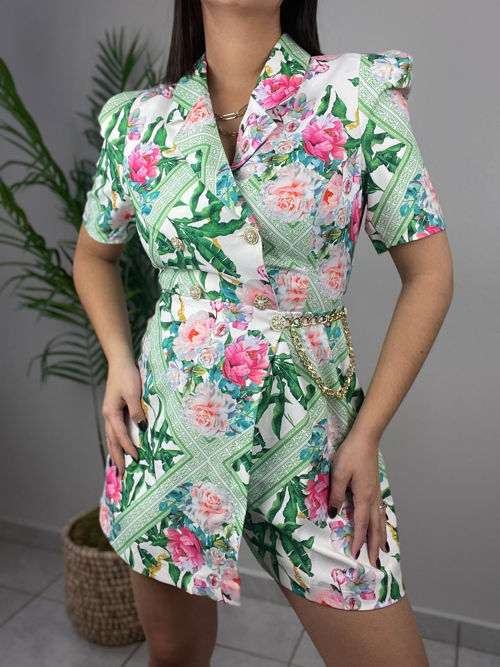 Green Flowers Romper