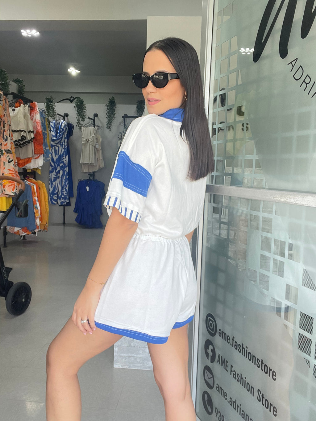 Blue and White Romper