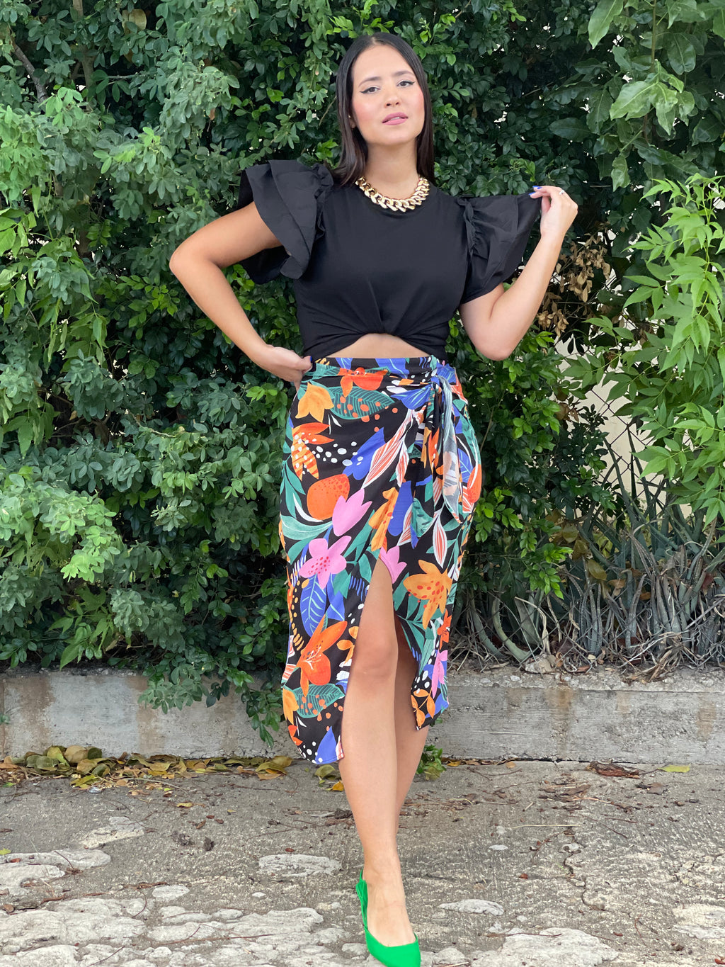 Black Floral Print Skirt