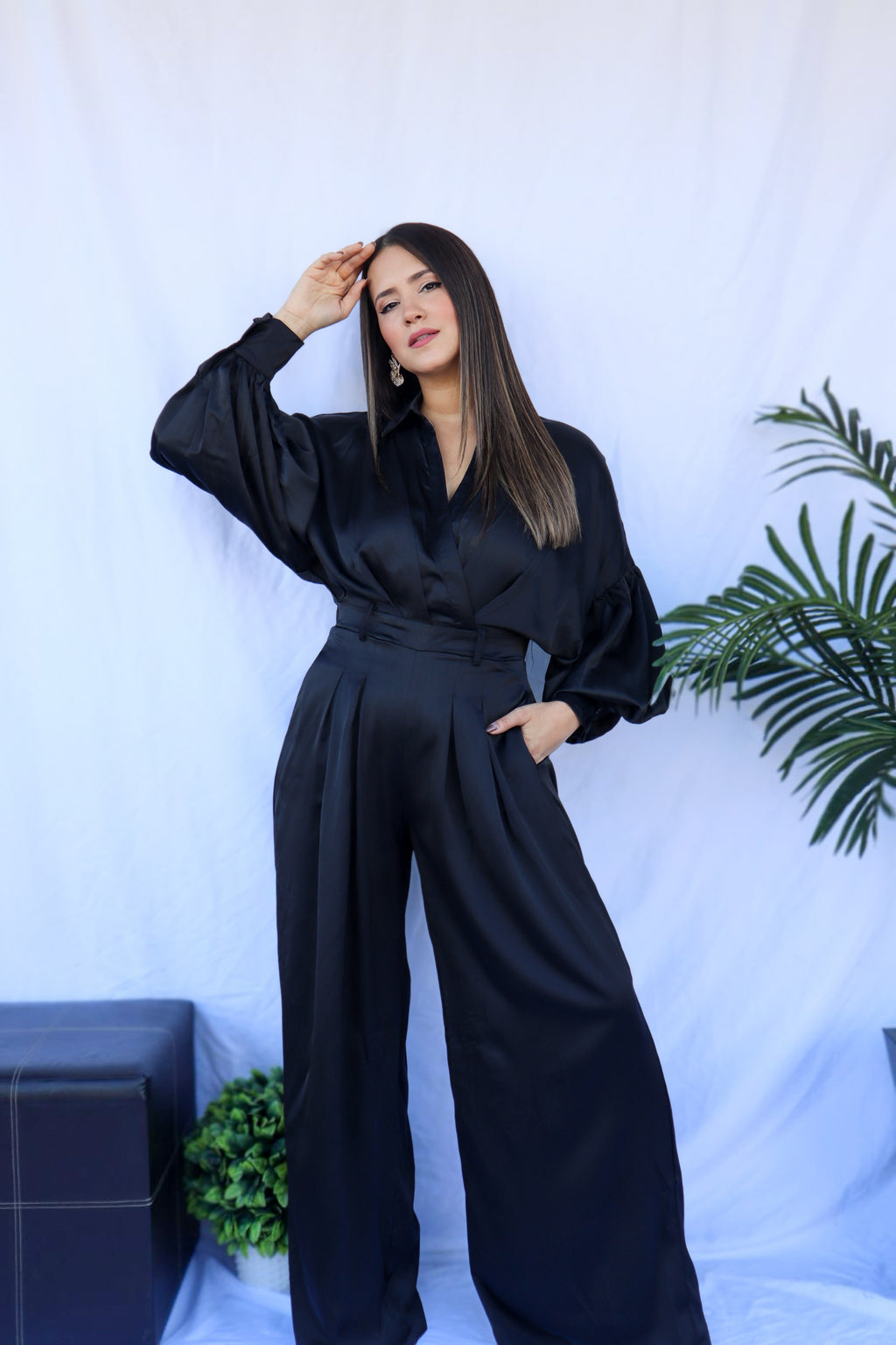 Long Sleeve Satin Black Jumpsuit