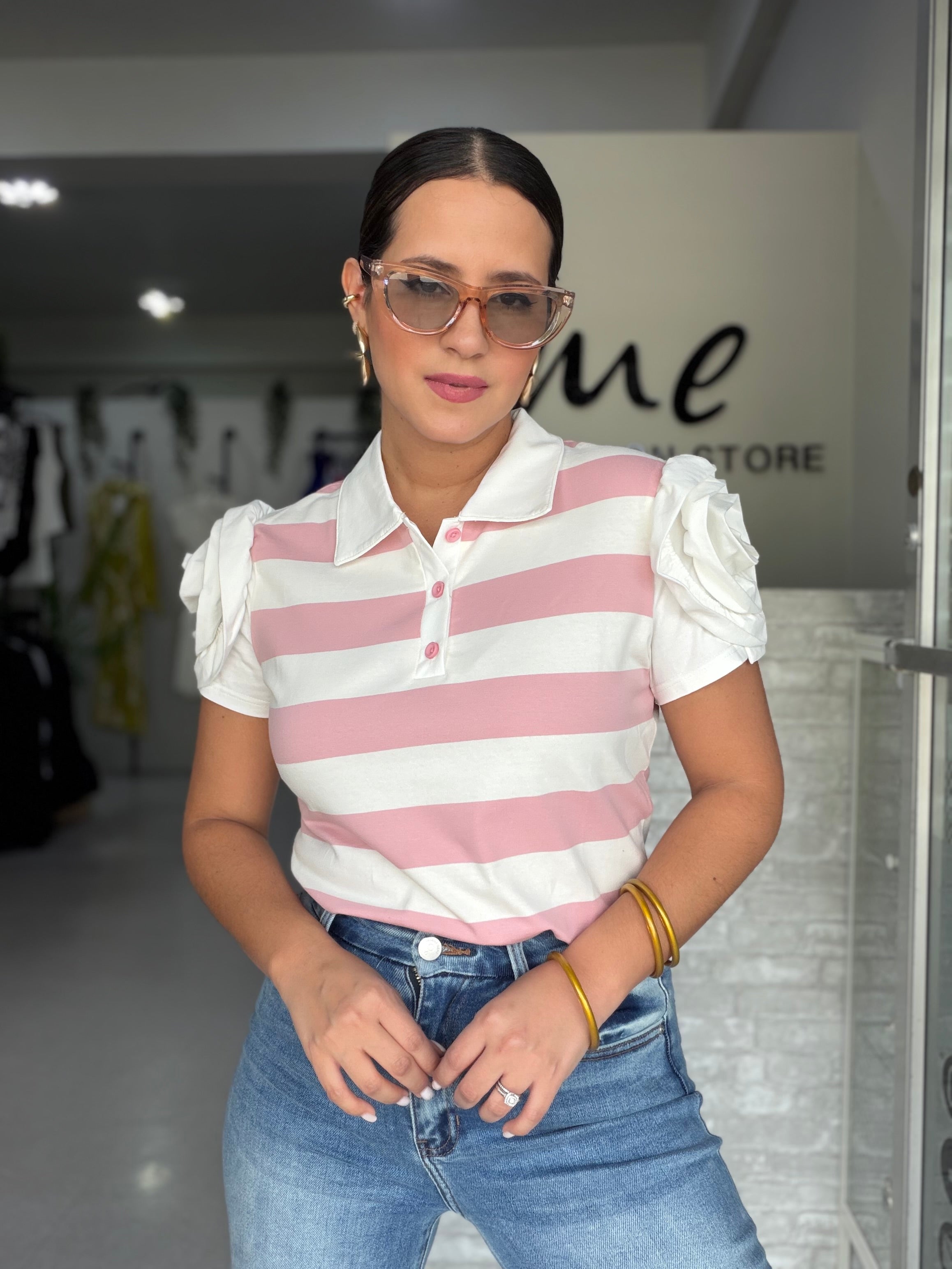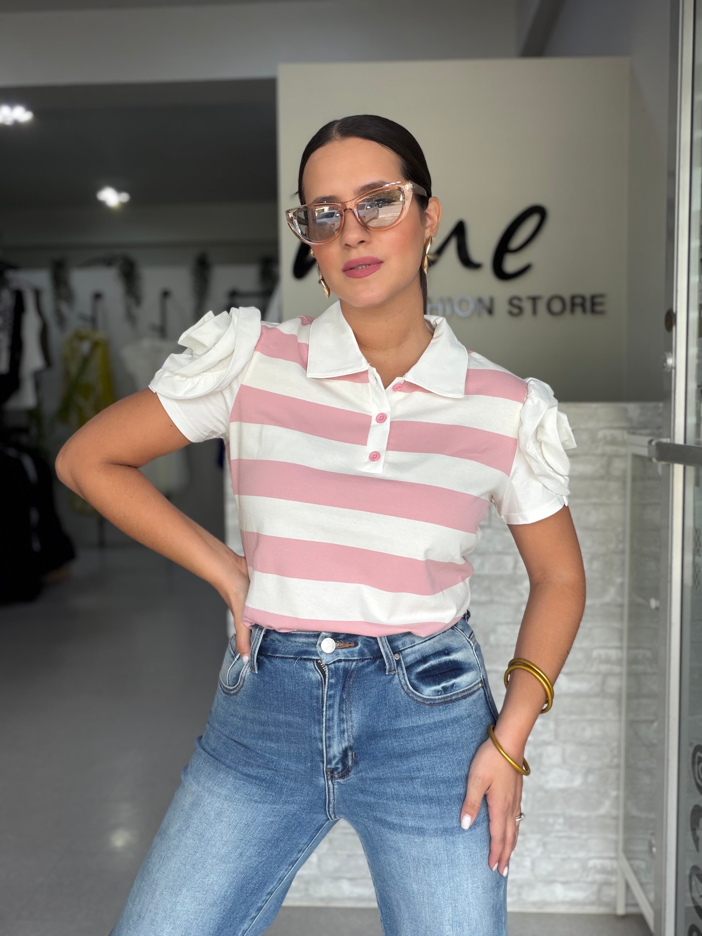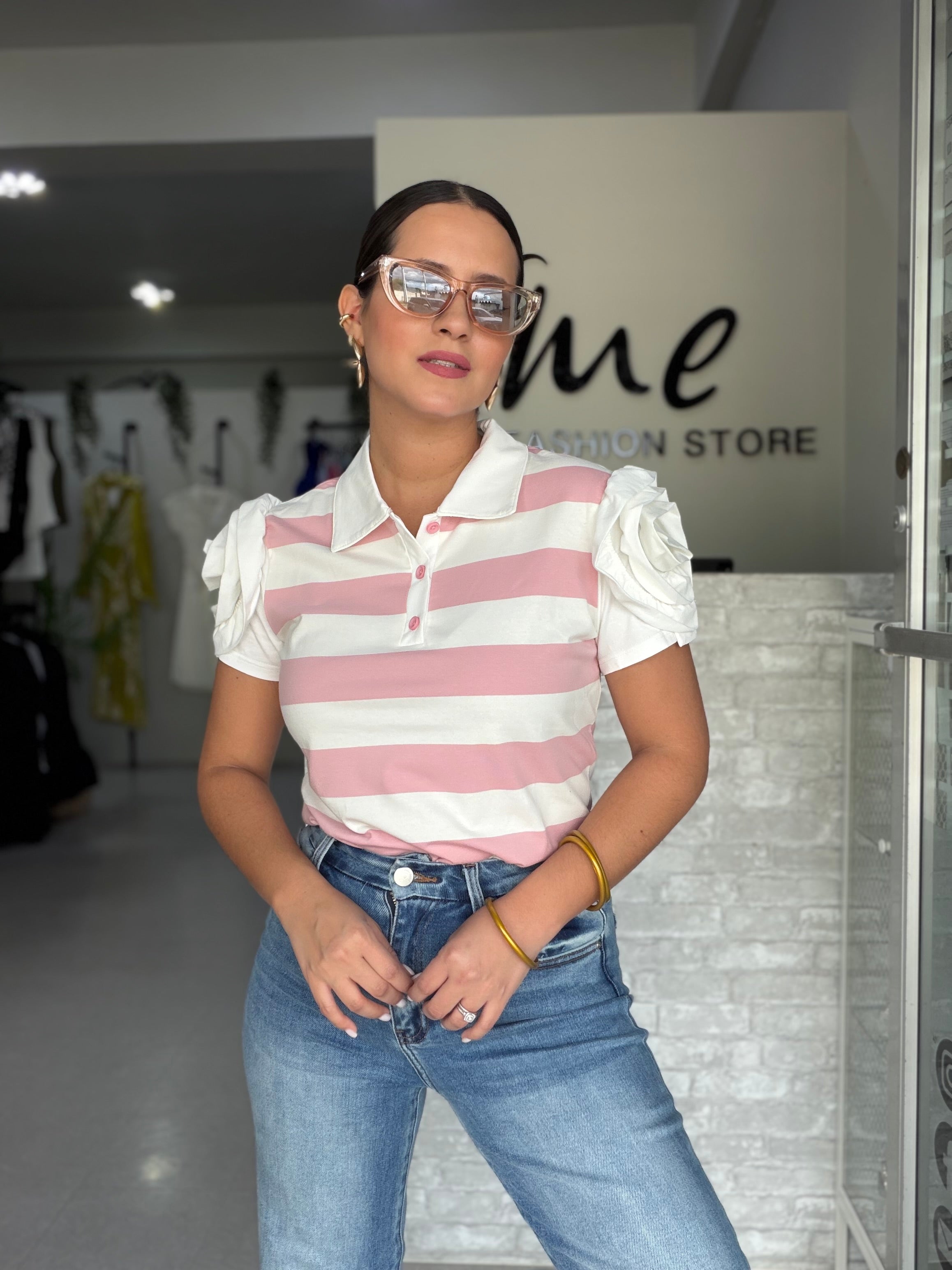 Flower Stripes Pink Polo