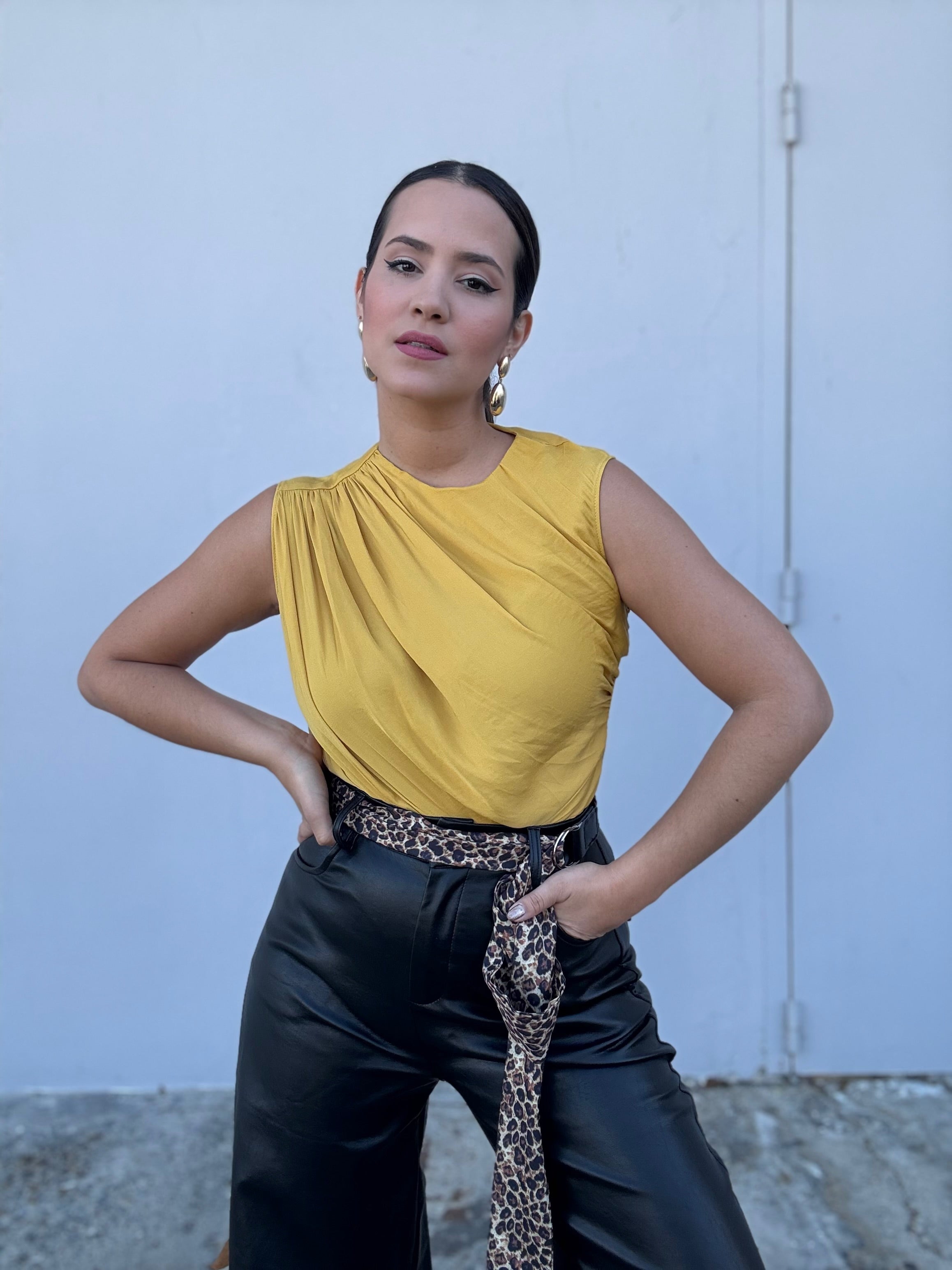Mustard Drapped Shoulder Blouse
