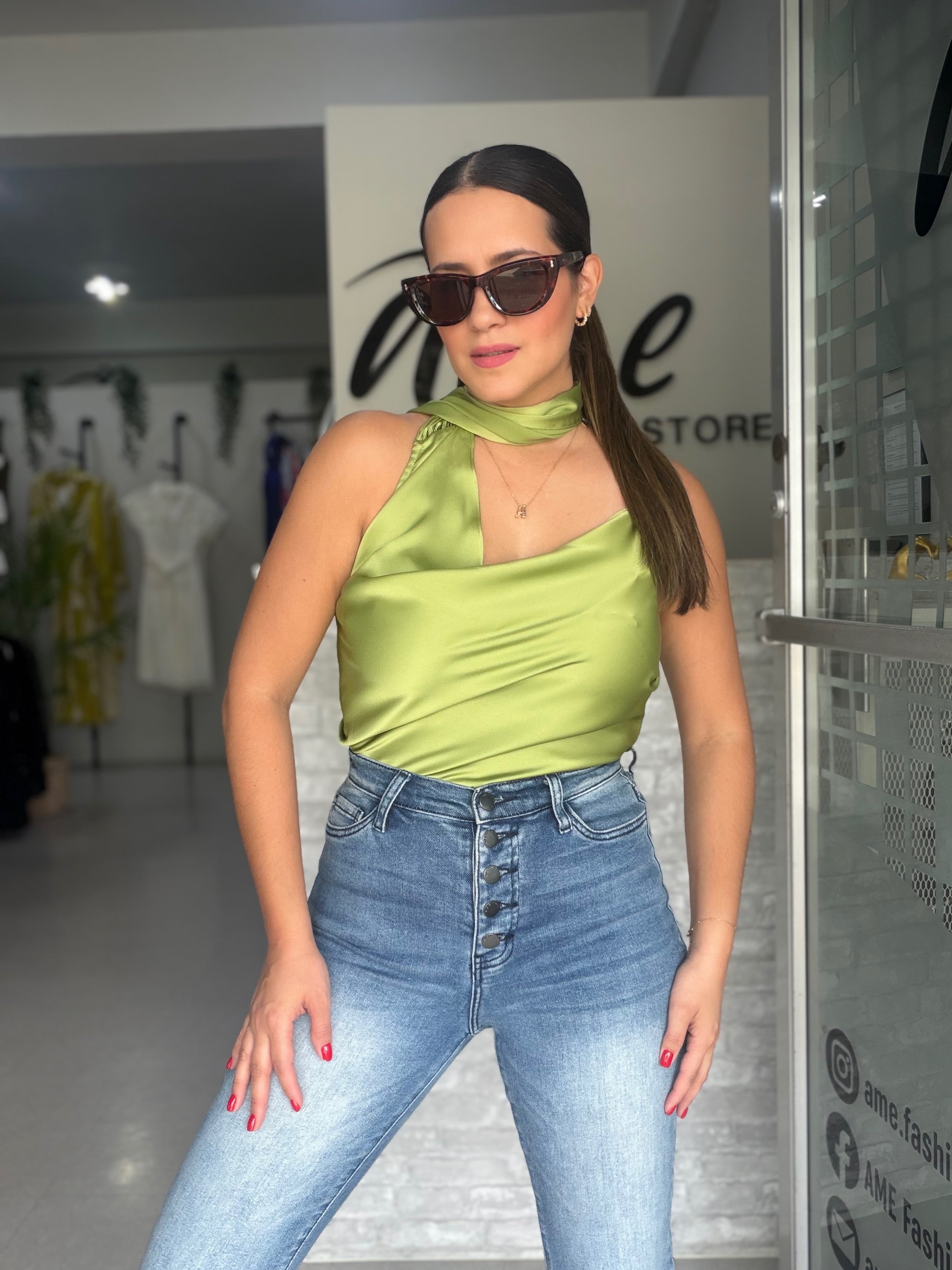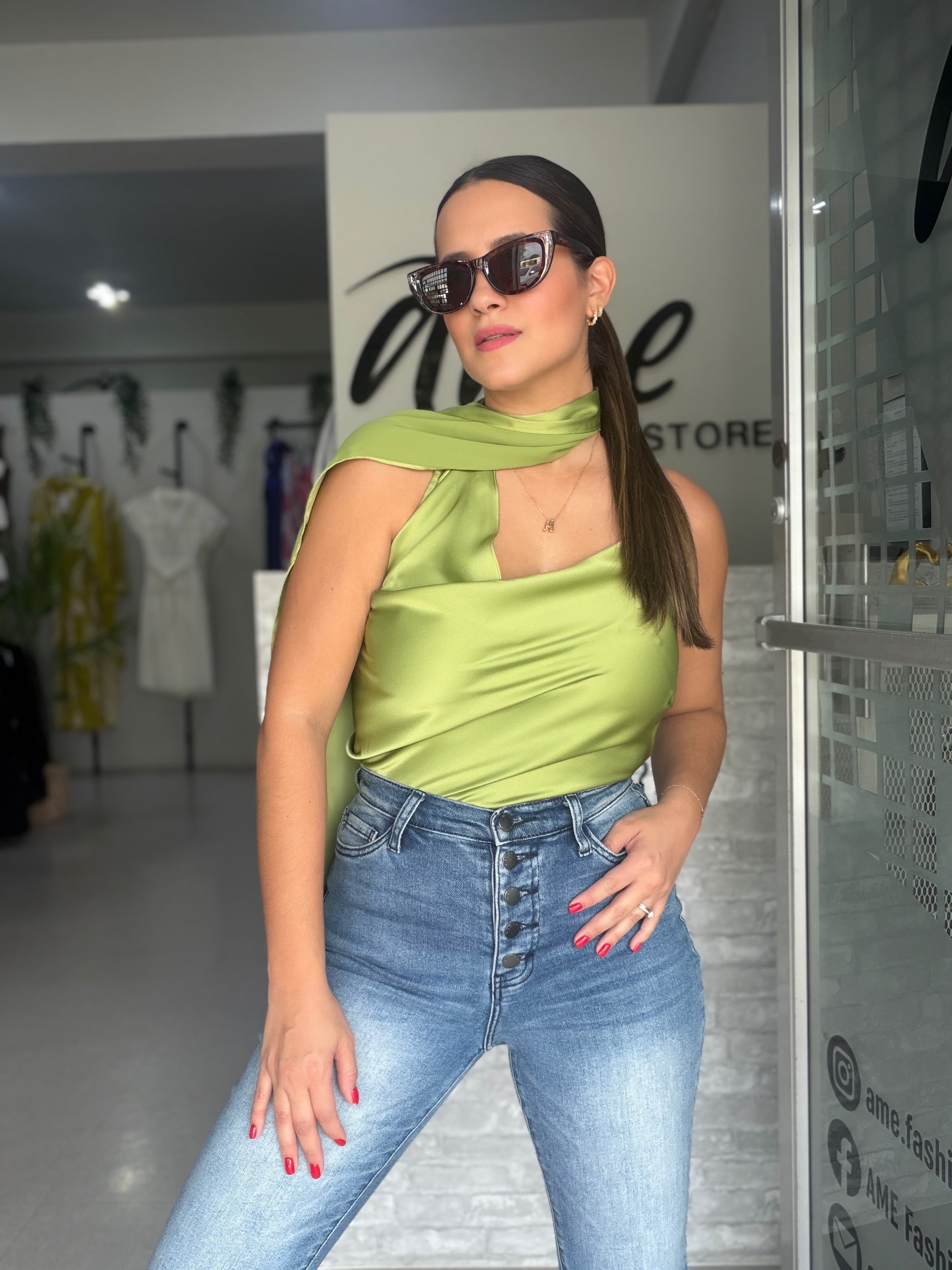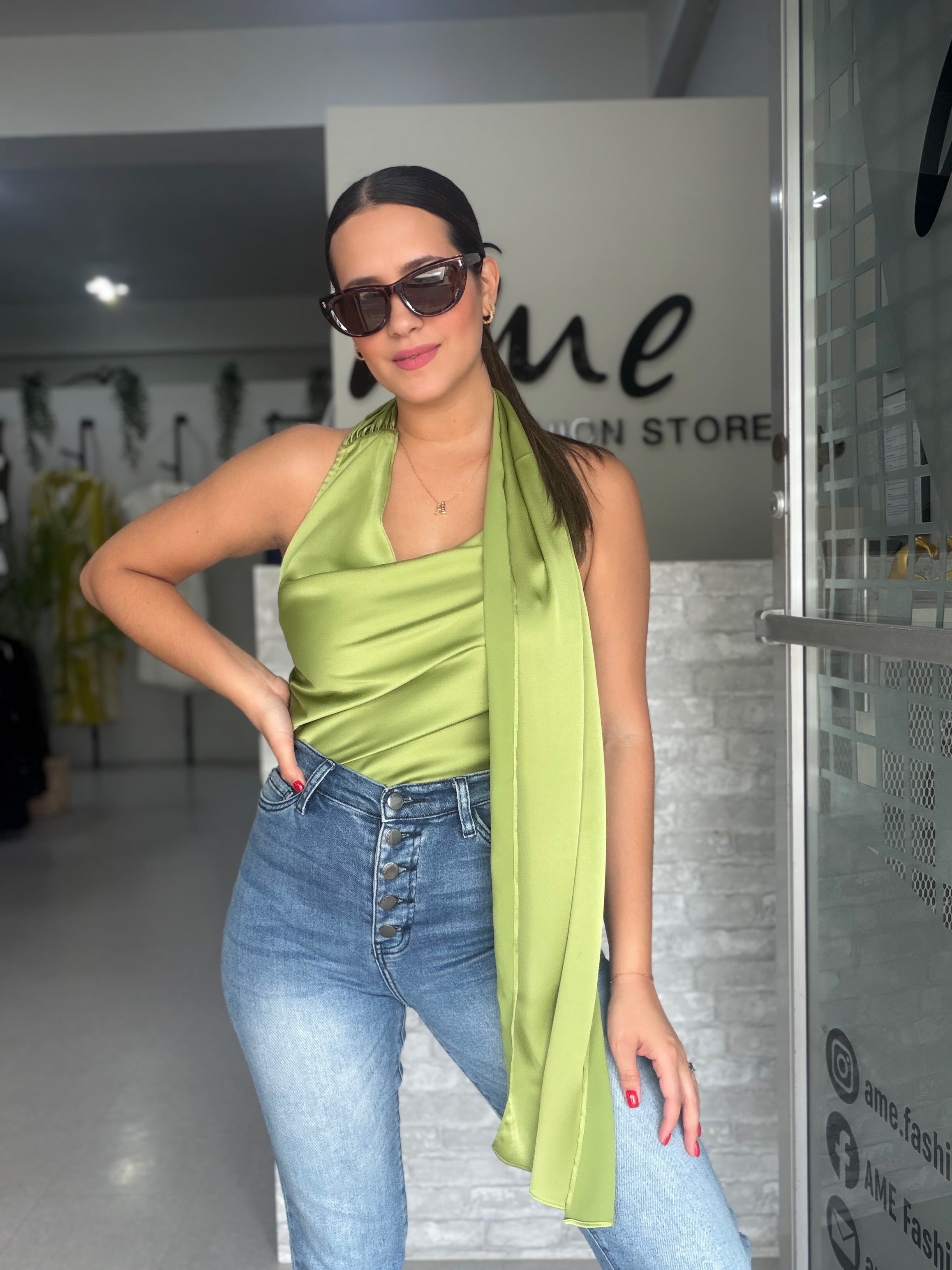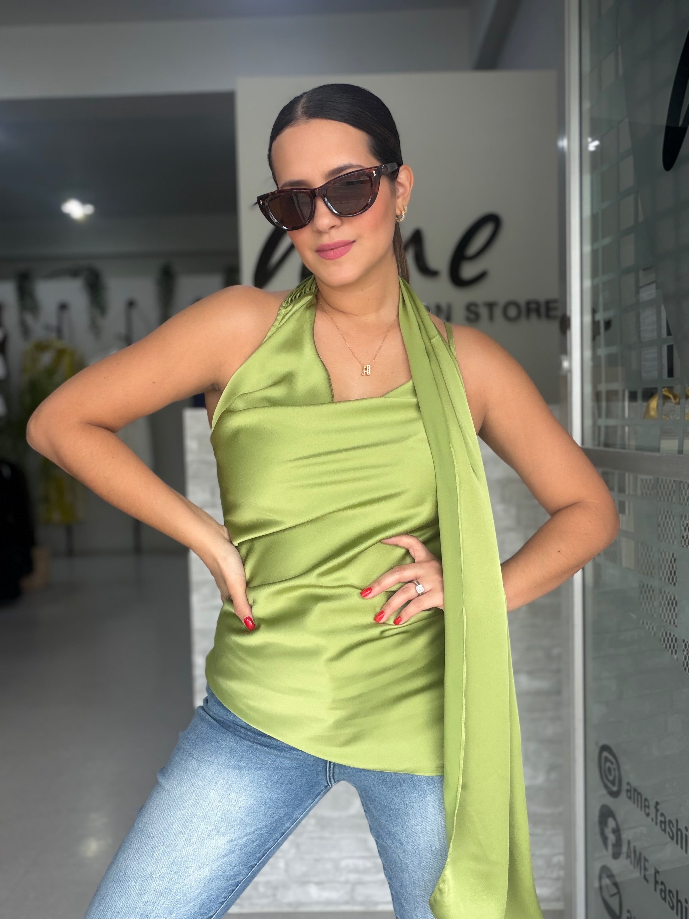 Sage Green Satin Blouse