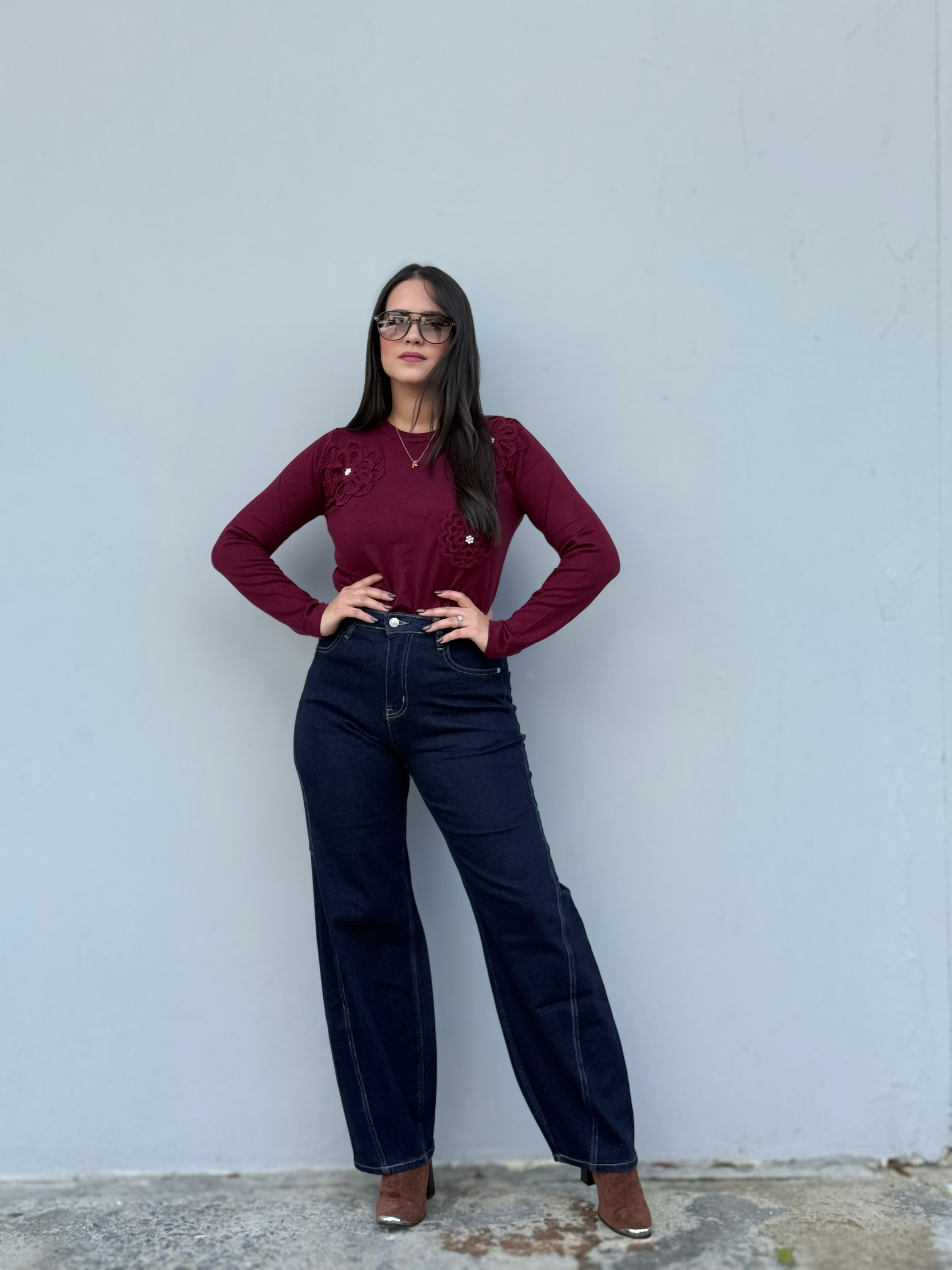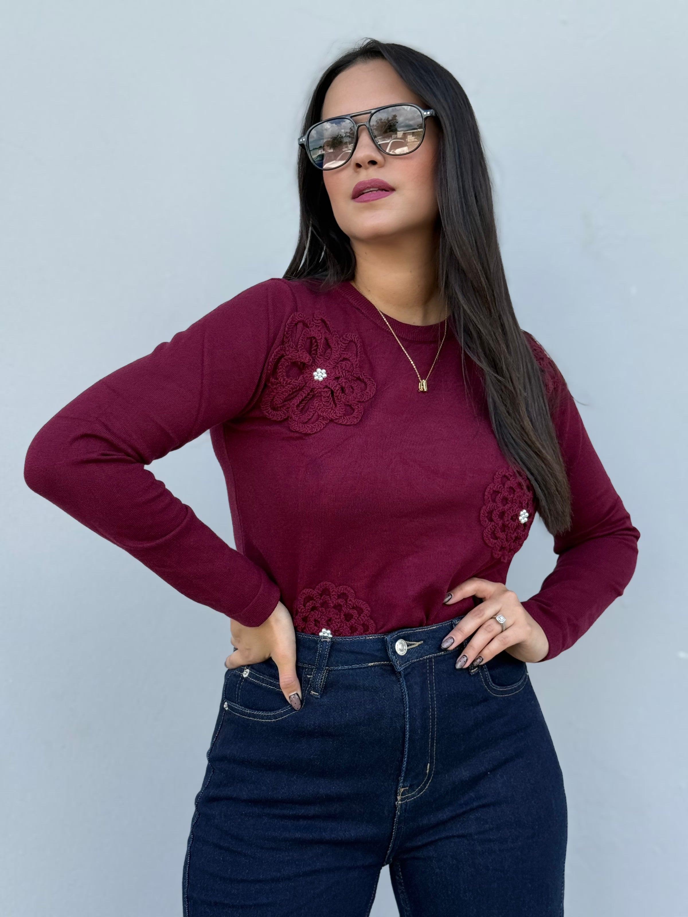 Wine Embroidery Sweater