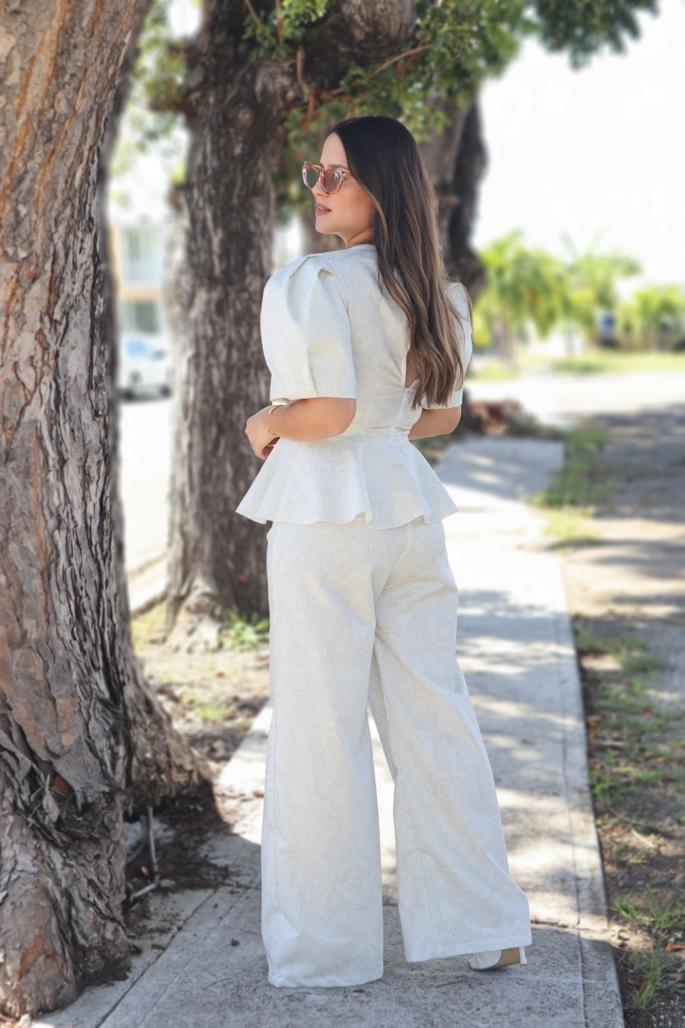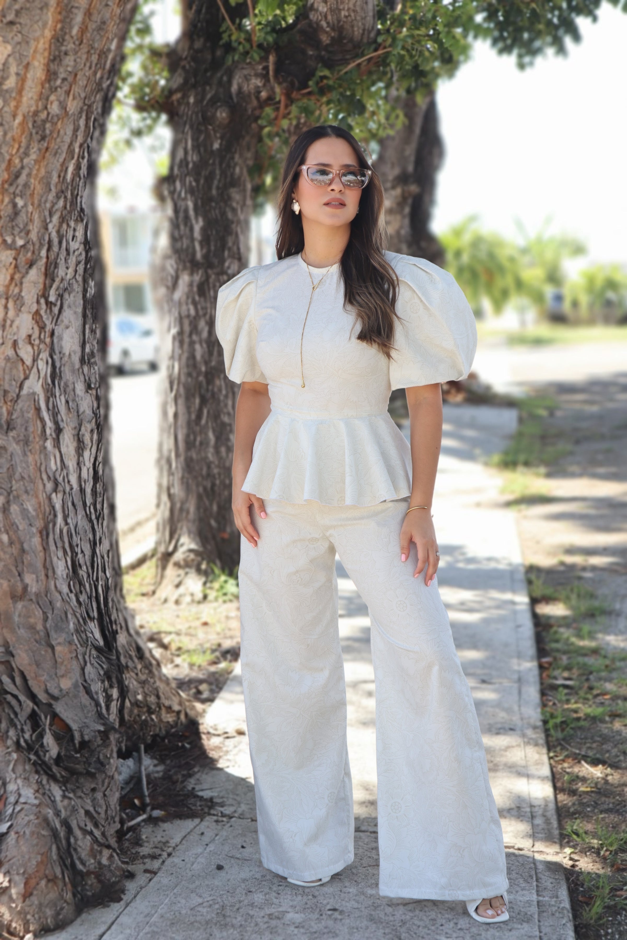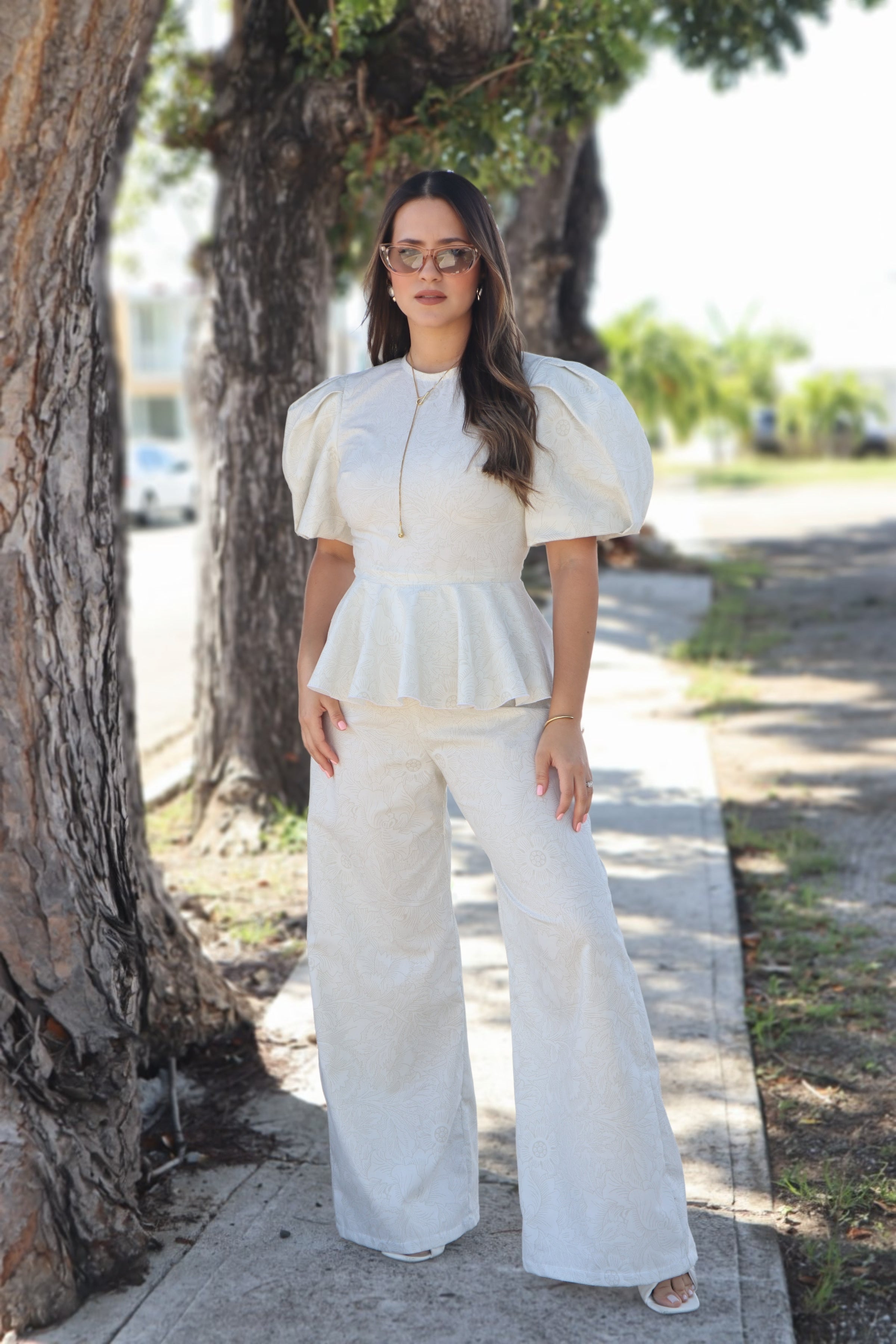 Pieza elegante confeccionada en tela 100% algodón, fresca y cómoda. Su silueta estructurada con mangas voluminosas y peplum en cintura crea una forma femenina y sofisticada. Incluye cierre de zipper invisible y botón en la espalda para un acabado limpio y pulido.